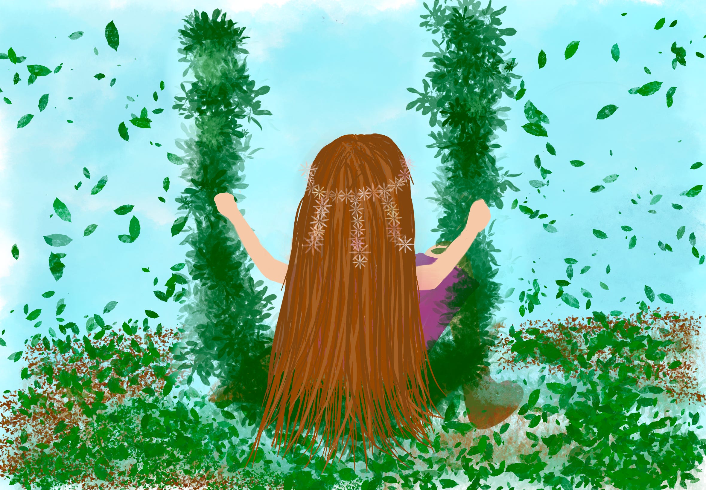 It’s not very good ik, but I loved to bring it to colors, I loved swinging sooo very much as a kid even now, we had swings at our home. And our home was very green, like a jungle in the city, and it was how I imagined every home to be maybe. But blabbing aside…